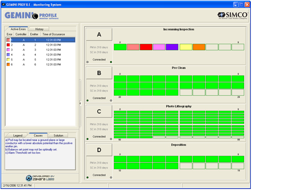 - Description: Worked with SIMCO engineering to develop an integrated ionization monitoring system with, setup and monitoring capabilities. The system includes real-time performance monitoring, graphing, logging and corrective action recommendation.