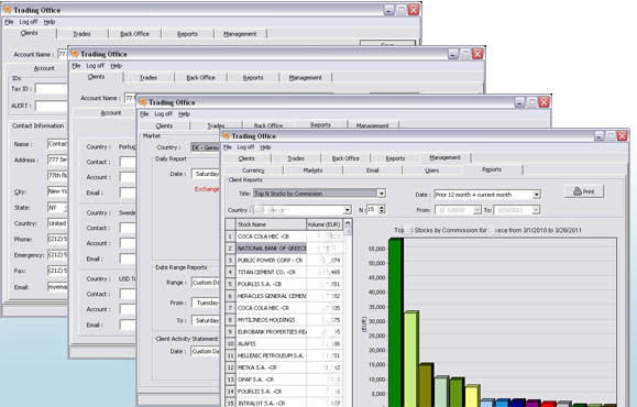 - Description: Trading Office is a multi market, multi currency back office trading system. It produces over 20 FINRA/SEC compliant reports, client confirmations, monthly statements. Managers can produce custom date range trader performance reports, client and market commission reports.